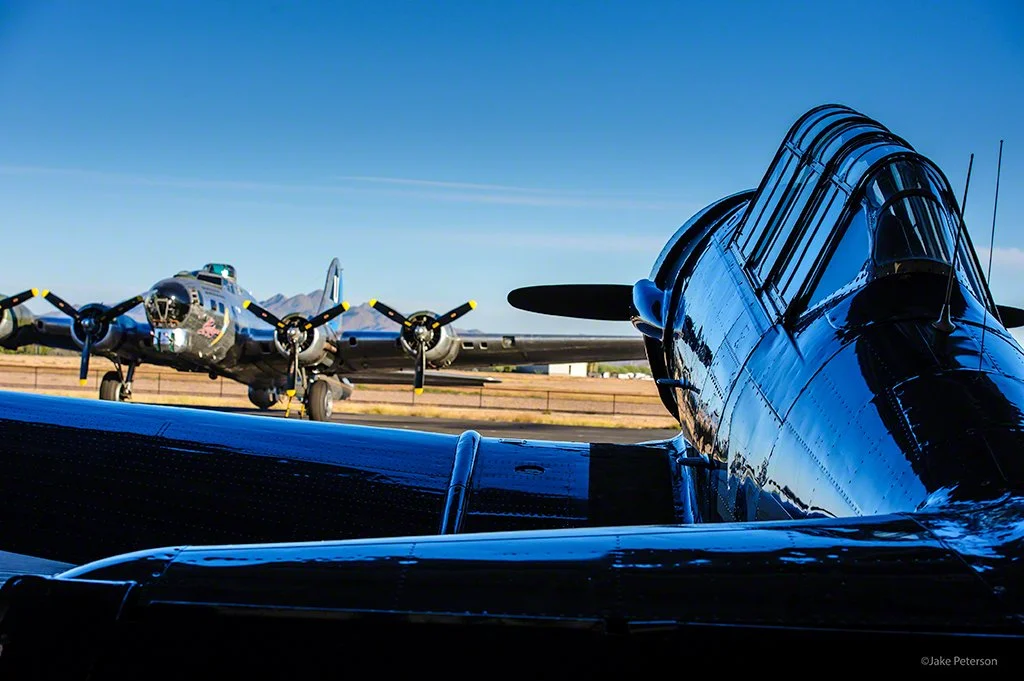 The AT-6 Texan, redesignated the T-6 in 1962, is one of the most used and collected warbirds. The T-6 was designed as an advanced trainer aircraft during WWII and was used at some point by almost every serviceman that went through the US Air Corp. After completing basic training on the biplane Boeing Stearman, pilots would go on to advanced training where they would learn to fly mono wing planes such as the Vultee BT-13 Variant and AT-6 Texan. Afterward, depending on the proven skill set and placement, they would go on to either single-engine training school or multi-engine training, basically separating the class into fighter pilots or bomber pilots. The AT-6 played a pivotal role in training pilots, being one of the first training aircraft they fly with metal surfaces, hydraulic flaps, retractable landing gear, and .30mm machine guns mounted in the wings for aerial and ground gunnery practice.
